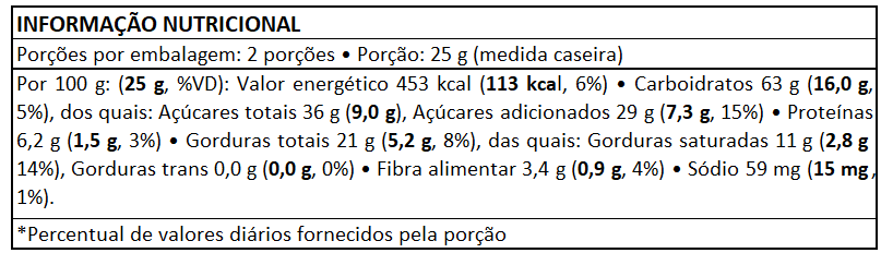 ALÉRGICOS: CONTÉM DERIVADOS DE SOJA E LEITE. PODE CONTER CASTANHA DE CAJU, AVEIA, TRIGO, OVO, CENTEIO, GERGELIM, AMENDÔAS E AVELÃ.